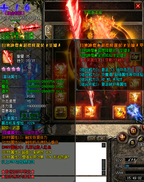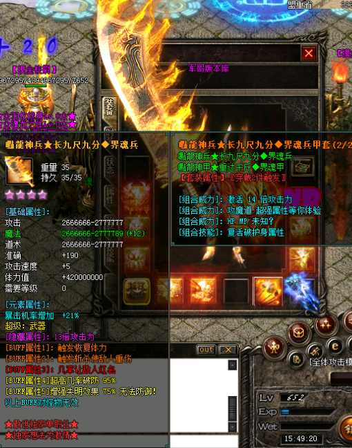 - 装备模式:套装属性强大,神秘神器装备,后期分打怪类装备,PK类装备。