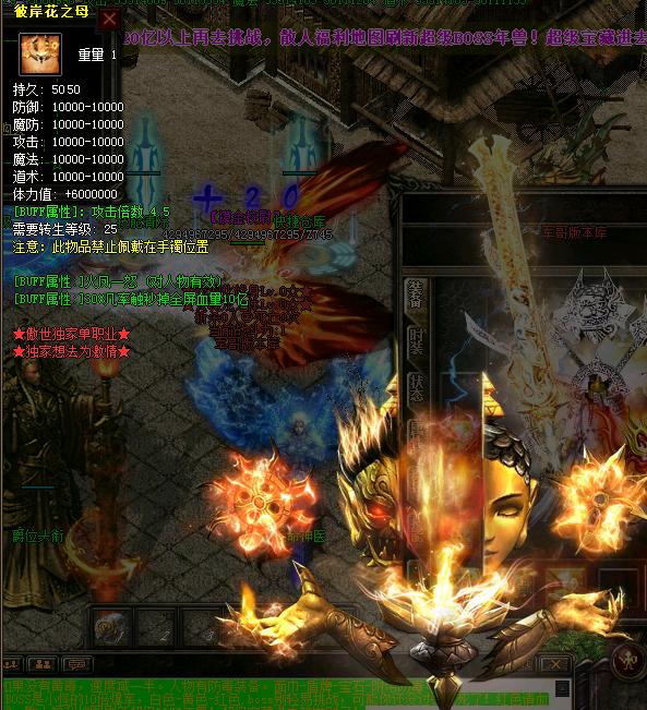 - 爆率介绍:BOSS是小怪的10倍爆率,白色-黄色-红色,boss别轻易挑战,可能你还没过去就死了 !