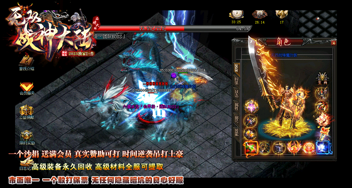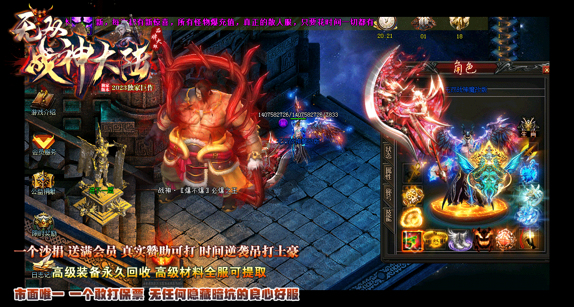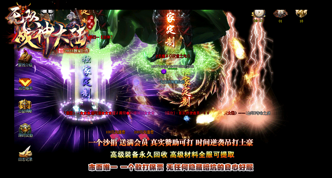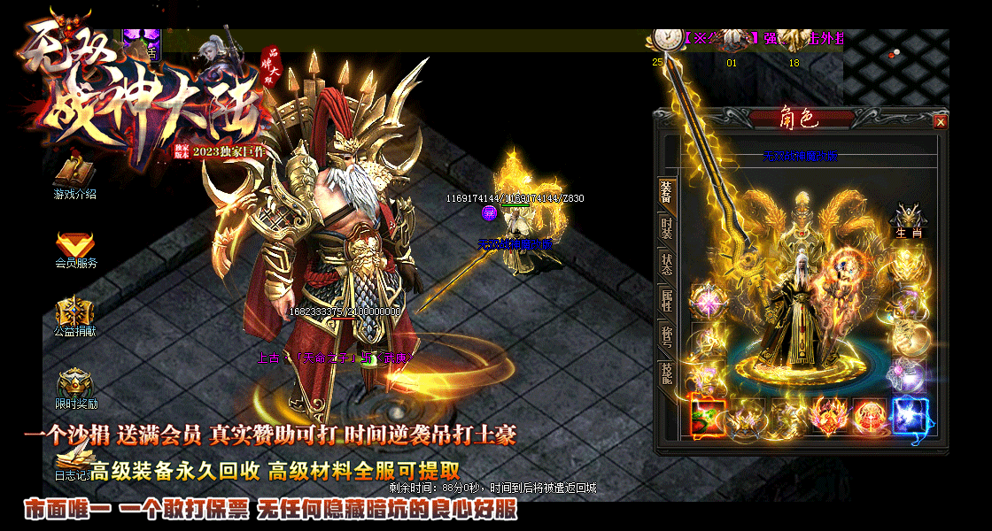 不卖任何装备-货币.材料.唯一充值一个沙捐送满会员.开局人人都一样.再无任何隐藏消费